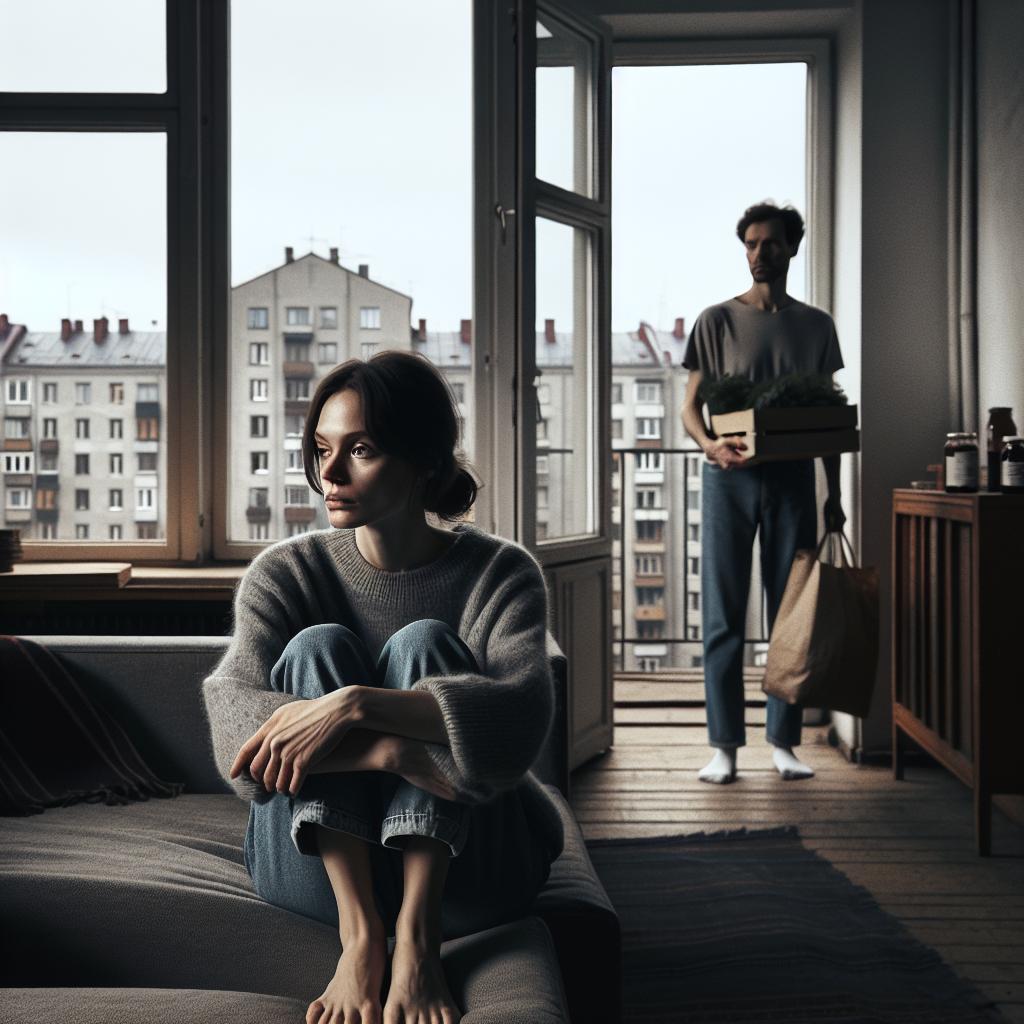 Ioana stătea pe canapea în garsoniera lor închiriată, ținând genunchii aproape de piept.