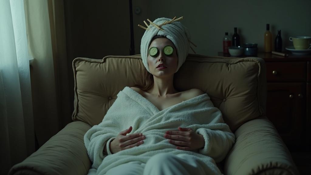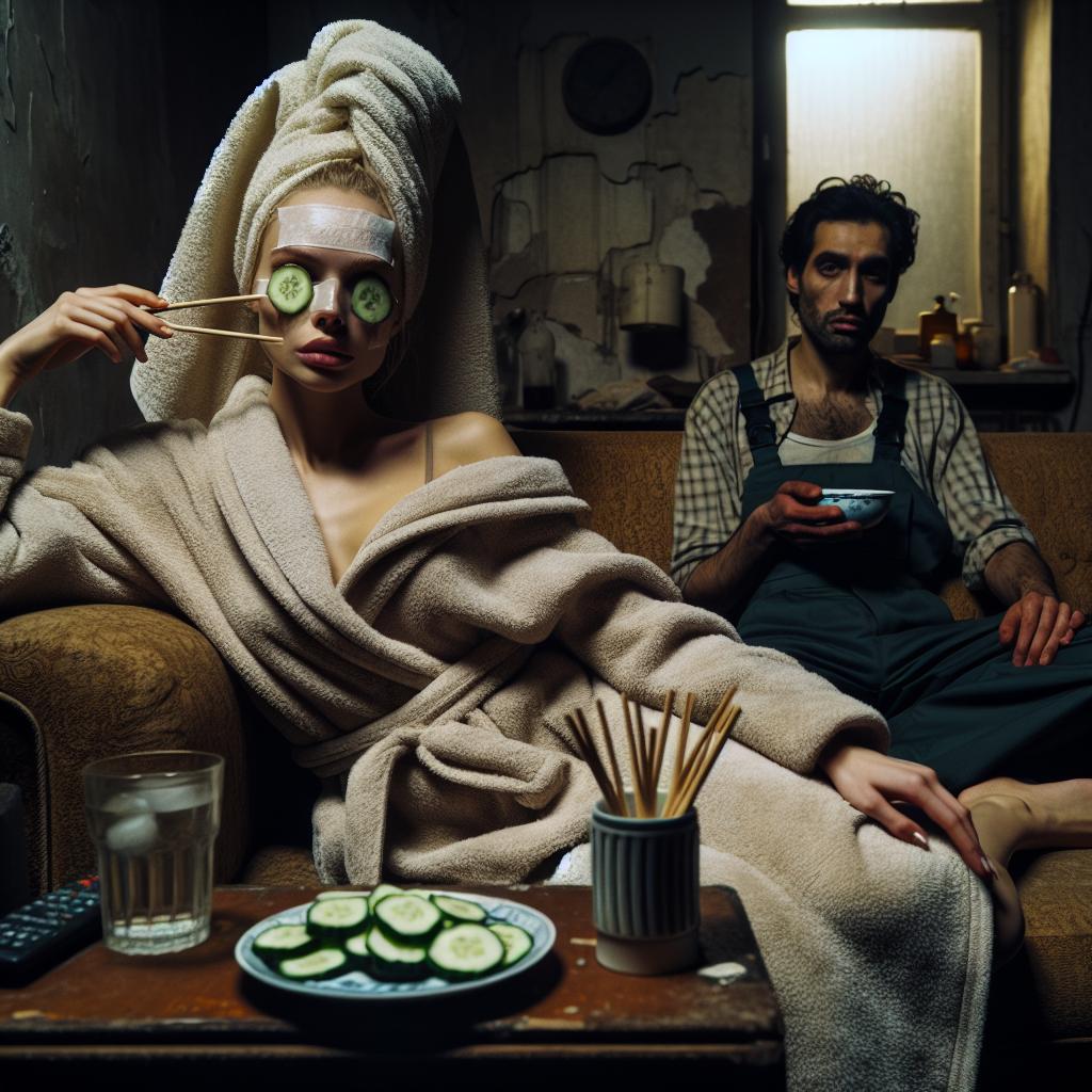 Intru seara în apartament. O liniște atât de adâncă, încât se aud chiar și ceasurile de pe perete — secundarul tresare, parcă batjocorindu-mi foamea. Iar în sufragerie, Elena mea — ca de obicei, întinsă pe canapea. Fața îi e acoperită cu o mască aplicată atât de gros, că ai putea să o dai jos cu șpaclul. Pe cap are înfipte niște bețișoare răsucite, seamănă cu cele chinezești pentru tăiței, ochii îi sunt acoperiți cu rondele de castravete, iar mâinile înfășurate în prosoape — ca o mumie scoasă dintr-un salon de frumusețe.
