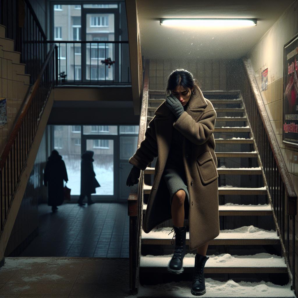 Ana a intrat în scară, și-a scuturat zăpada de pe cizme bătând din tălpi și și-a dat jos mănușa ca să-și șteargă lacrima de pe obraz. Apoi a început să urce încet scările.