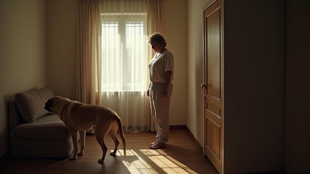 Denis, dogul bordelez mare care mereu alerga spre Ana când intra în casă — acum se ascunsese undeva adânc prin apartament.